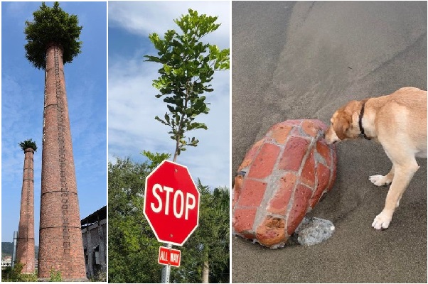 9. Vypadá to, že kouř vychází z komína, ale ve skutečnosti tam roste strom.