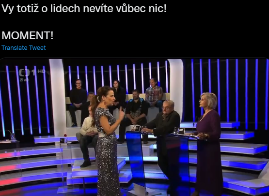 Pokud si chtěla senátorka Kovářová zasloužit pozornost moderátorky, tak se jí to opravdu povedlo. Velmi odvážnou poznámkou: “Jestli, jestli vy sama nejste schopna žít v dobrém manželství, tak to je jiná věc, ale je tady strašná spousta…,” si totiž vysloužila takovou zpětnou vazbu a nenávistný pohled, až jí to zaskočilo.