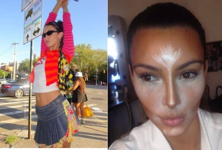 7. Bella Hadid – blůzka rozepnutá odspodu do poloviny
