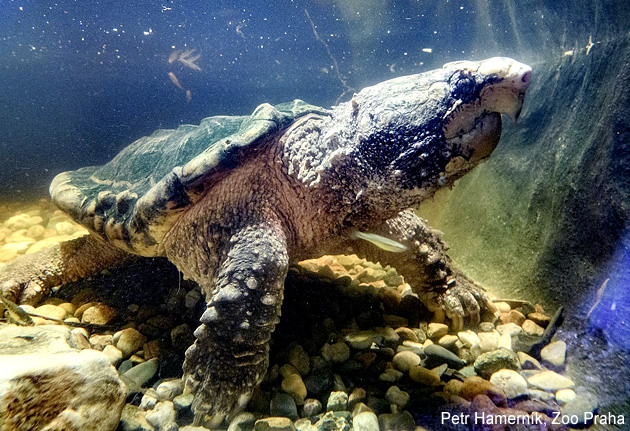 Která želva láká ryby na červovitý jazyk?