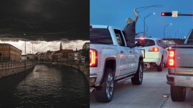 Co myslíte, že může chytat chlap s lasem v koloně aut? Možná se jedná o únosce, kteří se tímto snaží lapit svojí oběť, ale kdo ví.